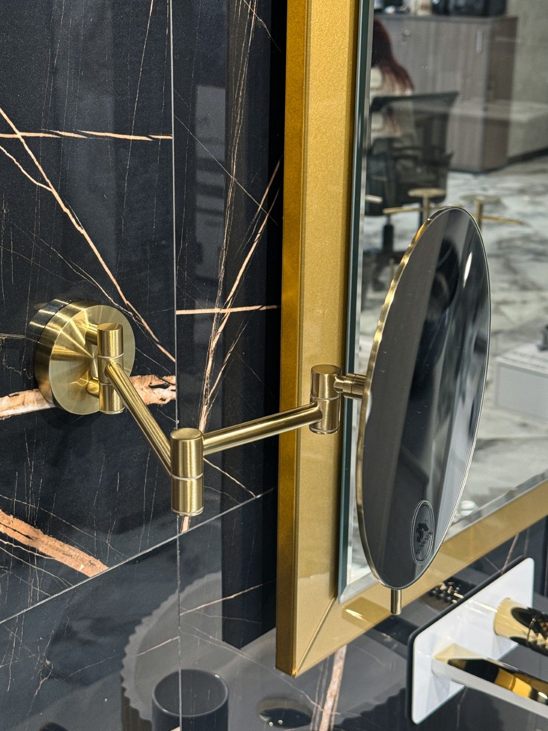 Настенные зеркала Boheme в круглом и прямоугольном исполнениях. С трехкратным увеличением. Минималистичный ультратонкий дизайн. Корпус выполнен из нержавеющей стали, угол поворота регулируется
