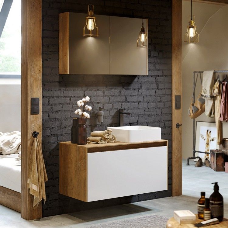 Зеркало-шкаф Aqwella Mobi MOB0408+MOB0717DB 80 см Зеркальный шкаф 80 см с двумя дверьми на петлях с доводчиком. Цвет дуб балтийский
