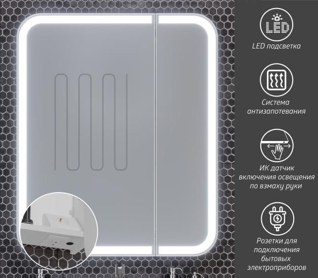 С розеткой для подключения электробытовых приборовСтрогий контроль при изготовлении изделий исключает наличие малейших дефектов. Зеркальное полотно дает четкое отражение без каких-либо искажений. Белый матовый цвет прекрасно дополнит интерьер ванной комнаты.Опадирис - высококачественная мебель, оригинальный дизайн, достойное качество отвечает самым высоким требованиям, лучшие экологически чистые материалы и комплектующие. Изысканные очертания мебели OPADIRIS - это воплощение высочайшего мастерства, насладиться которым могут счастливые обладатели фирменных изделий и аксессуаров.