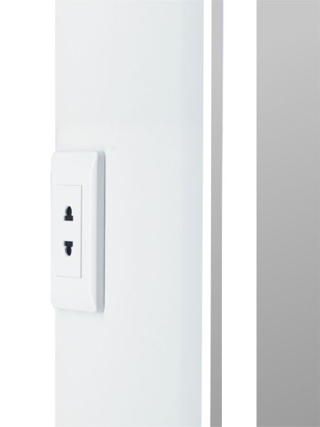 Стеклянные полки легко регулируются по высоте, а розетка позволит удобно использовать электроприборы. Хромированные крепления не ржавеют при длительной эксплуатации в условиях повышенной влажности. Защита по стандарту IP44 обеспечивает безопасное использование устройства в условиях повышенной влажности
