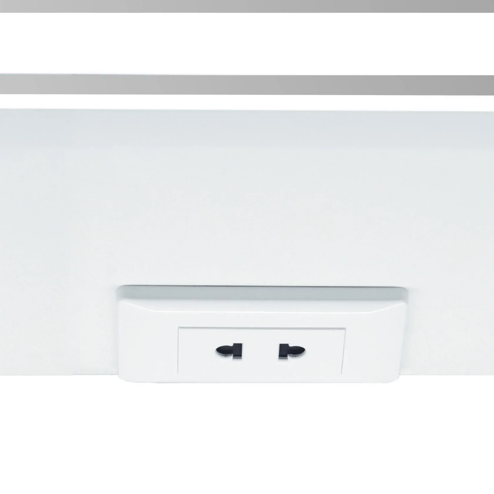 Стеклянные полки легко регулируются по высоте, а розетка позволит удобно использовать электроприборы. Хромированные крепления не ржавеют при длительной эксплуатации в условиях повышенной влажности. Защита по стандарту IP44 обеспечивает безопасное использование устройства в условиях повышенной влажности