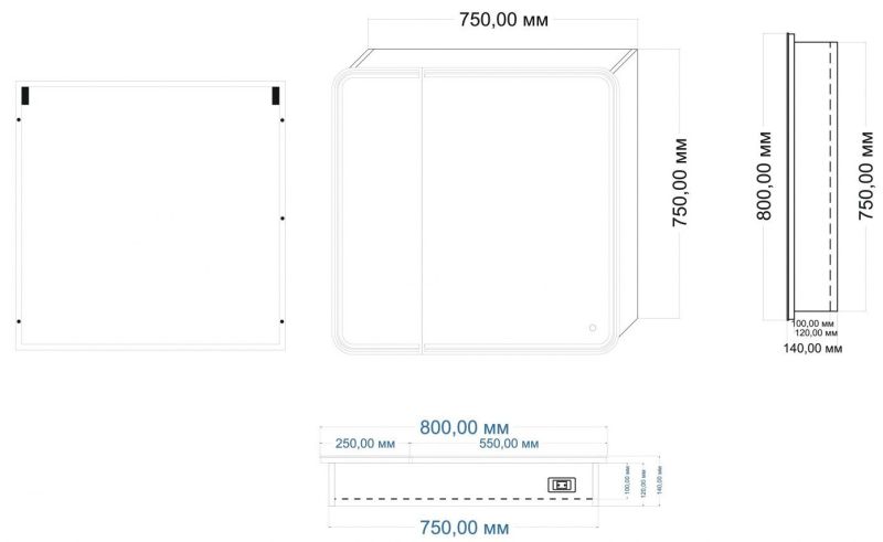 - Размер шкафчика: 750х750х100 мм