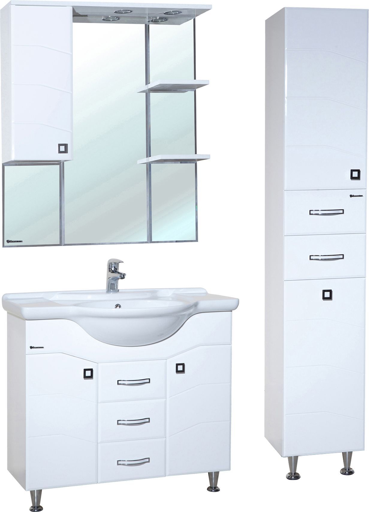 В производстве используют только качественные влагостойкие материалы (ВЛДСП), в составе которых полностью отсутствуют опасные вещества. Данная серия выполнена в эксклюзивном дизайнерском решении в лучших традициях современного стиля. Белый, основной цвет исполнения Bellezza, гармонирующий с большинством интерьерных решений. Шкаф-зеркало предусматривает удобную и вместительную систему хранения. Зеркало Bellezza оснащено галогеновой подсветкой, позволяющей комфортно провести утренние процедуры.