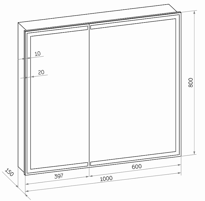 Зеркало-шкаф "Allure Led" 1000х800 с датчиком движения, розеткойLED подсветка 6000К; датчик движения, Материал корпуса - влагостойкий ЛДСП + МДФ в пленке ПВХ, розетка, две створки