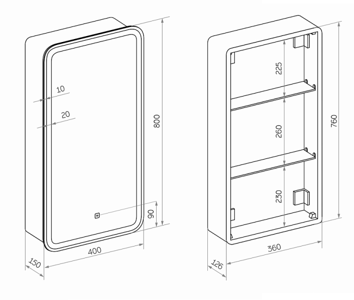 Зеркало-шкаф с подсветкой Continent Elliott МВК058 левый 40см белый