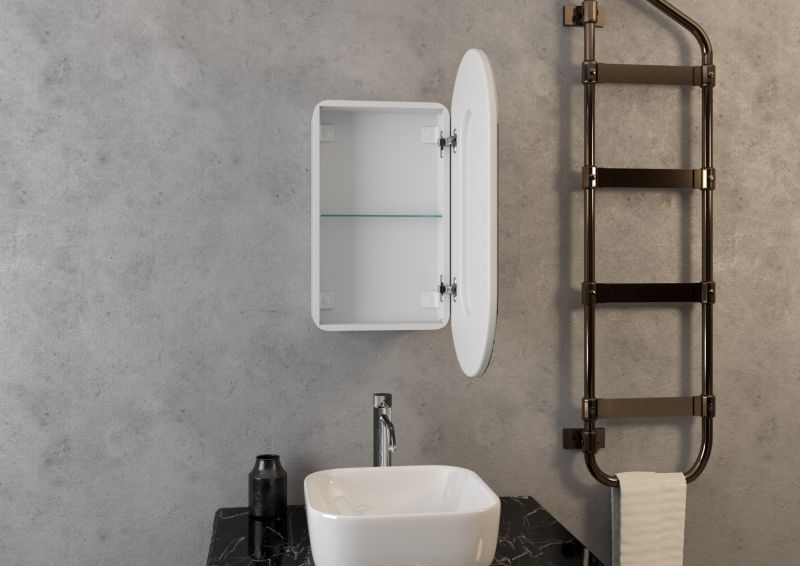 Зеркало-шкаф "Elmage White LED" 450х800LED подсветка 6000К;датчик движения,материал корпуса - МДФ,цвет корпуса - белый,розетка на корпусе,реверсивные крепления
