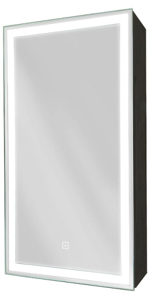 Зеркало-шкаф "Mirror Box black Led" 350х650 правыйLED подсветка 6000К; сенсорный включатель с функцией димирования, материал корпуса - МДФ, пленка ПВХ с эффектом Soft touch, цвет корпуса - черный