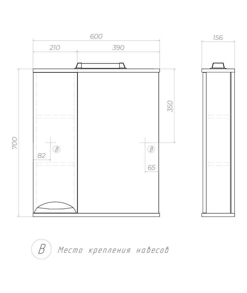 Левое/правое исполнение шкафчика; 1 дверца; 2