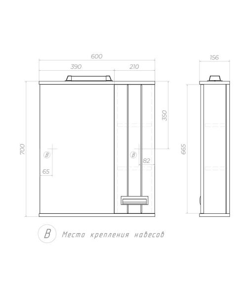 Левое/правое исполнение шкафчика. 1 дверца; 2 полки ЛДСП, 1 светодиодный светильник, включатель ... Подробнее