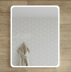 Зеркало STWORKI Монтре Мон.02.80/W 80 с подсветкой, сенсор на зеркале, квадратное, белое, настенное